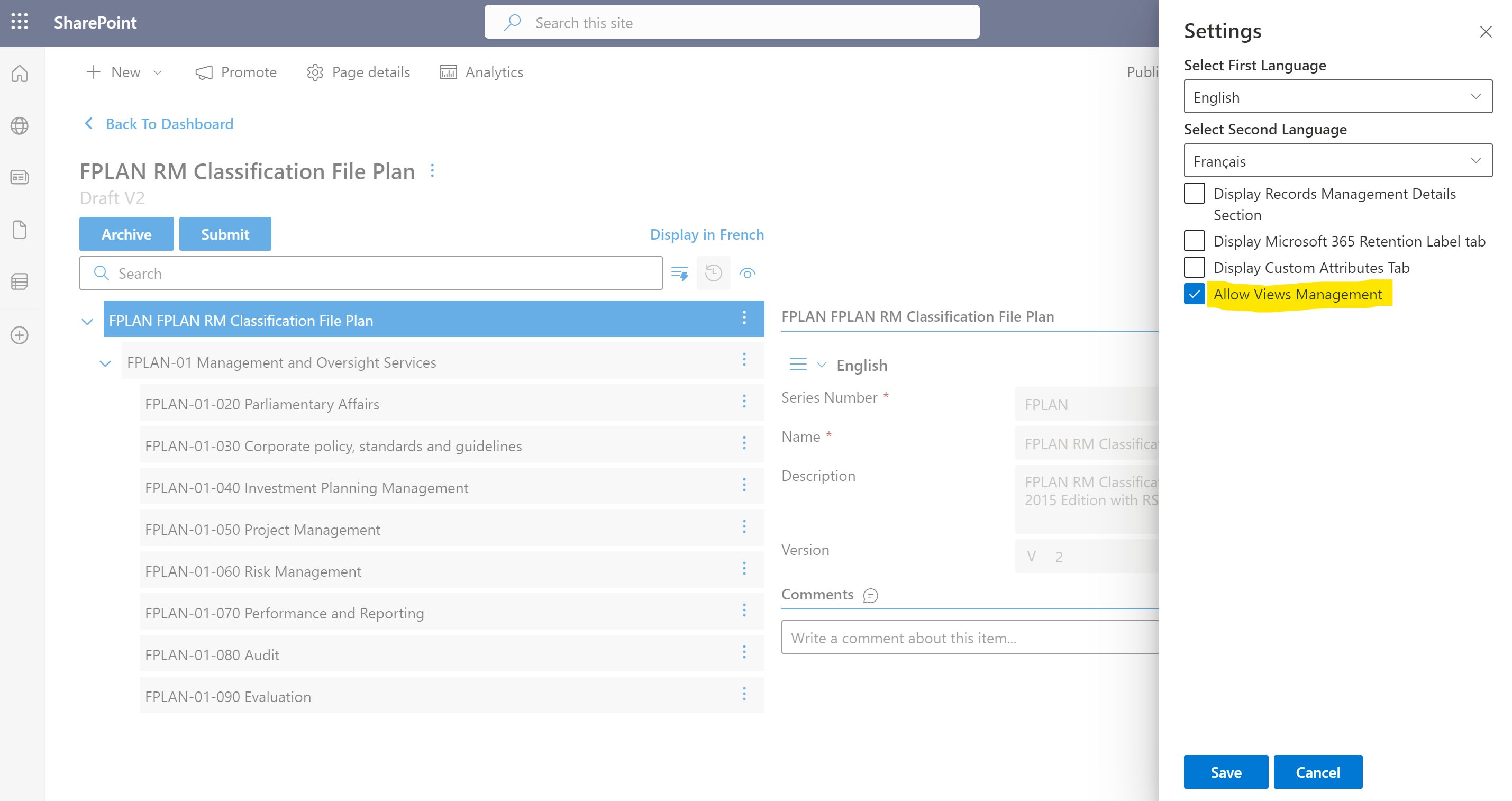 - The Taxonomy Views Management setting is also included in the Taxonomy Import file, before you import a Taxonomy from an Excel file, ensure the Allow View Management is set to True.