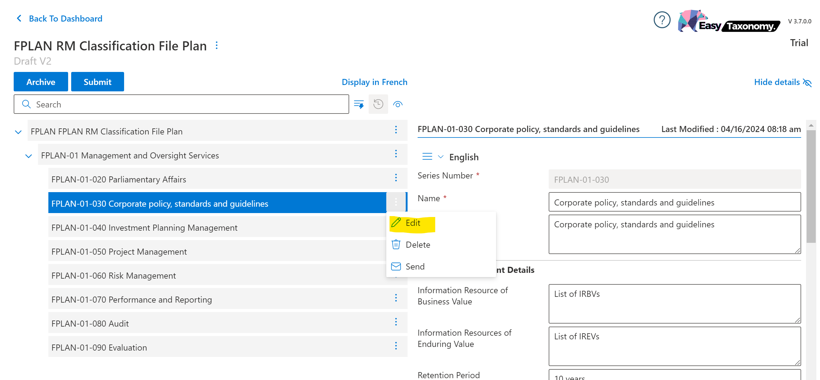 4. Enter an English name and a French name and optionally, the respective descriptions.